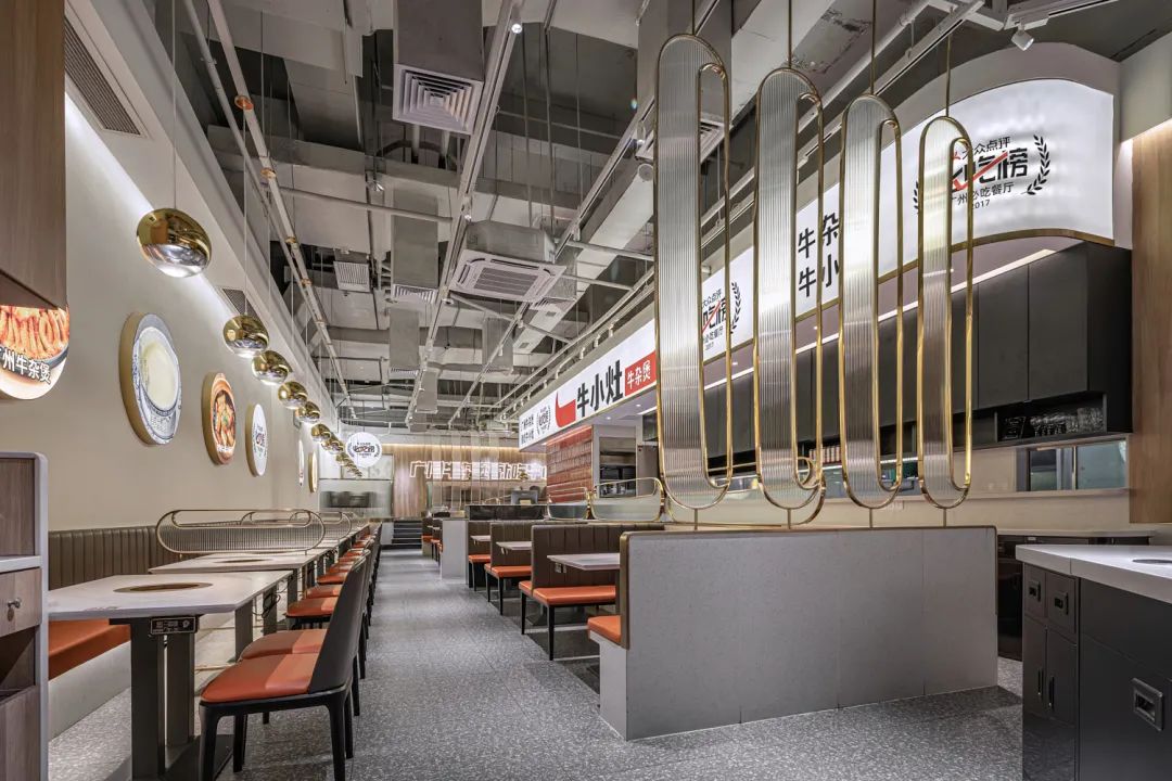 簡(jiǎn)潔,即不添加多余裝飾,做簡(jiǎn)單實(shí)用的設(shè)計(jì),讓物有所值,既滿足顧客用餐體驗(yàn)又兼顧營(yíng)運(yùn)需求。真正做到少即是多。低調(diào)的色彩應(yīng)用起來(lái)不著聲色,卻能突出牛角元素,設(shè)計(jì)不著痕跡卻反哺著品牌。