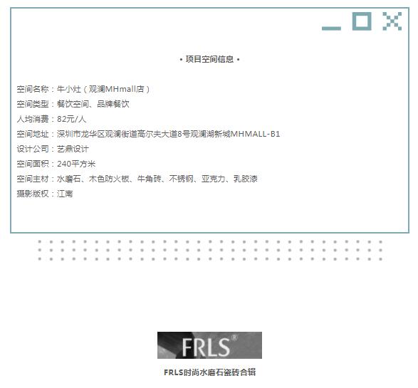 本案空間為長(zhǎng)條形空間布局,Mo?意大利灰時(shí)尚水磨石的溫潤(rùn)打底,在自然光和人工照明的配合下,具有的儀式感和藝術(shù)感。木色防火板提升空間溫度,牛角造型隔斷讓用餐變得精致有趣,不銹鋼配亞克力的架構(gòu)則注入絲絲硬朗風(fēng),陣列的牛角磚更是空間和品牌文化的又一次呼應(yīng)……